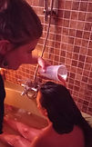 - Un bain chaud avec aspersion aux herbes médicinales, chants, tambour